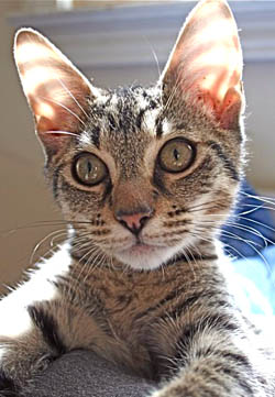 The first time I got a good look at Sam, he was flying through the air. Somebody was angry at this defenseless little kitten, so she threw the tiny ball of fur from her porch onto the driveway. The person doing the throwing never saw the kitten again. I stole him.