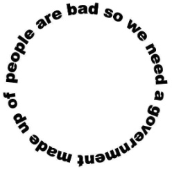 Republicans and Democrats point fingers at each others and claim that the other side is evil. And everyone who supports the whole statist system says we have to have such a system because people are so inherently evil that the public has to be protected from them. Are people evil and untrustworthy? Of course. But if you give power to control a society to a group and call it government, who is going to end up winning the power? It’s people being drawn from the “evil populace” — and the worst among them are going to tend to be successful in winning power.