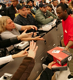 Three days ago, I wrote about the efforts of anti-consumer activists — who I’d say are downright socialist in their orientation — to stop people from buying from major companies on Black Friday this year. The people waiting in line for a Black Friday sale here Thursday night certainly didn’t believe that big companies were dictating anything to them. It’s when I look at these two groups — the materialist-oriented throngs of shoppers on one side and the anti-consumerist socialist activists on the other — that I realize just how ambivalent I really am about this. I don’t like or agree with either side.