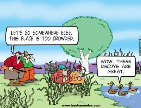 It took a long time, but the ducks finally fought back with decoys of their own.