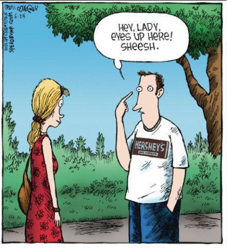 Some women have accused men of looking at them in inappropriate ways — instead of looking them in the eyes. This would definitely turn the tables with some women I know.