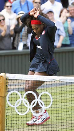 Serena Williams won a gold medal at the Olympics Sunday and she was obviously excited at the end of the match. She danced around the court in pure joy, at one point doing what some people refer to as the “crip walk.” Some people started going ballistic, saying she was “tainting” her gold medal with this little bit of joy. (Here’s an item from the Washington Post with a look at it from a more sympathetic point of view.)