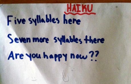 Something tells me that this student didn’t exactly have his heart in the haiku.