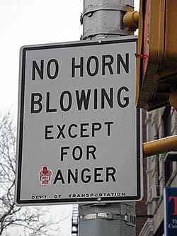 But I was angry. He was violating the rules. He was cheating. He was holding me up. I blew my horn in righteous indignation.