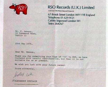 “Thank you for submitting your tape of ‘U2’ to RSO, we have listened with careful consideration, but feel it is not suitable for us at present,” said the letter that was addressed to Paul Hewson, who you might know better as Bono. “We wish you luck with your future career.”