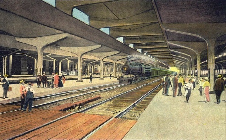 Note: The picture at the top looks nothing like the train platform in my dream. I’ve never been able to find anything that looks like the dream image. The picture is from a 1922 postcard showing trains and people inside Birmingham Terminal Station, which was torn down when I was a child.