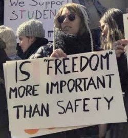 At the big protest march in Washington, D.C., over the weekend, there was a sign which was popular and was being tweeted by many people. The protester had written, “Is ‘freedom’ more important than safety?”