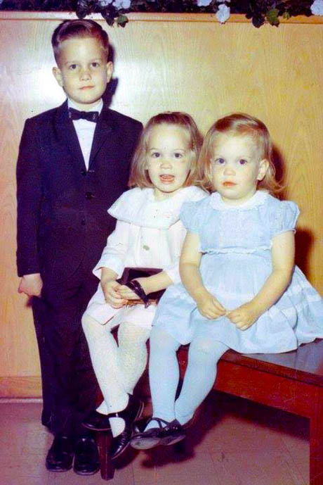 I was about 14 years old when this photo was taken, so my sisters would have been about 12 and 10. That’s Mary on the left and Rebecca on the right, mugging for the camera with someone else’s sunglasses.