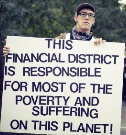 Take this guy on the right. Please take him. Can you think of any rational argument that Wall Street is responsible for “most of the poverty and suffering on this planet”? I can’t. I can usually take the flip side of almost any argument and find an approach to make case. There’s just not a rational argument for this one.