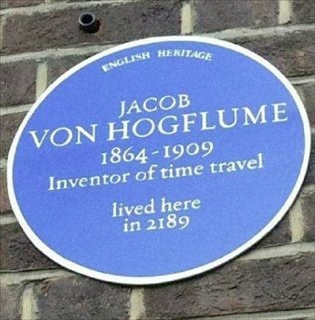 And, finally, Jacob Von Hogflume is the fictitious inventor of time travel, as well as a former and future resident of London, according to Dave Askwith and Alex Normanton. This was one of many funny signs created and posted throughout London by the pair, which they documented in their book “Signs of Life.”